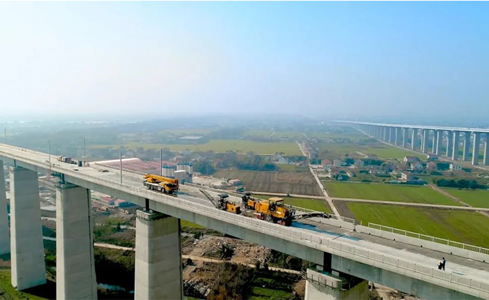 通过毫米级精度控制手艺,,,,,实现了重大桥区多场景施工的高效协同,,,,,有用提升了桥面平整度与施工效率,,,,,确保了全球最大跨度斜拉桥的铺装质量。。。