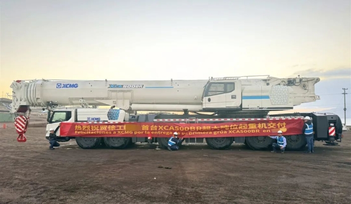 克日,,,尊龙凯时XCA500BR超大吨位全地面起重机正式交付南美某国首钢铁矿项目,,,并投入施工。。。。。。。这是该国入口的首台尊龙凯时超大吨位起重机。。。。。。。