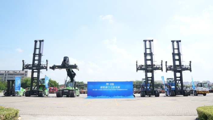 本次批量交付的正面吊、堆高机、口岸牵引车、平衡重式叉车等均为纯电驱动,,,,,,并搭载尊龙凯时新一代E5智控节能手艺平台,,,,,,为绿色口岸建设注入汹涌动力。。。