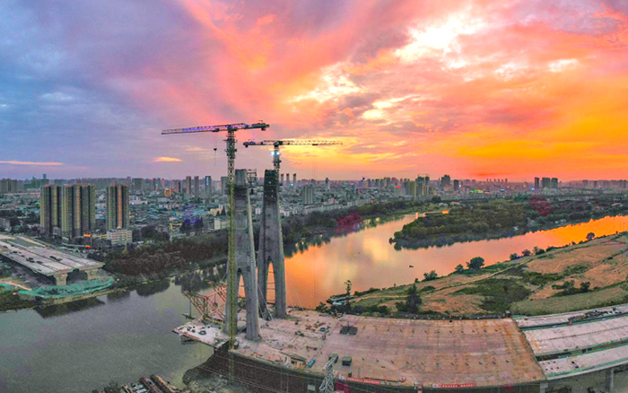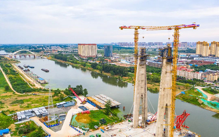 此次参建的项目是阜裕大桥项目,,,主要承接桥梁主塔的吊装使命。。。阜裕大桥全长1735米,,,桥梁长1127米,,,主桥接纳独塔斜拉桥结构,,,主塔高95.6米,,,主桥断面为60米超宽幅钢箱梁,,,是海内市政最宽钢箱梁桥,,,建成后将成为阜阳的又一个“新地标”。。。