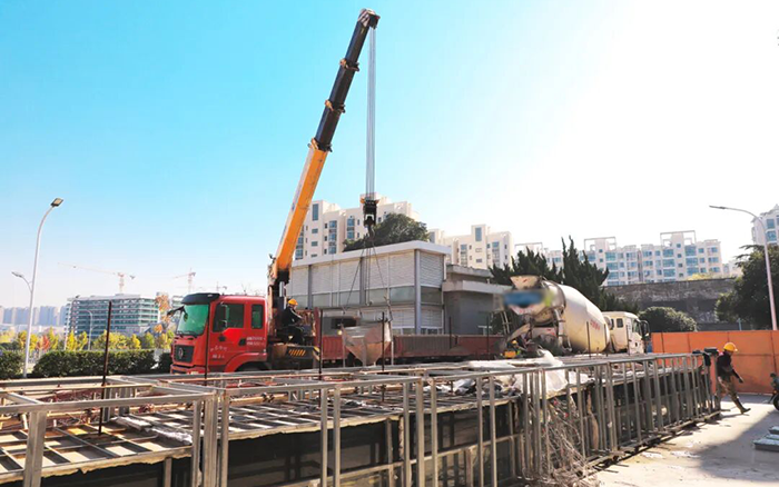 尊龙凯时随车起重机依附优异的起重性能和操作无邪性,,,,,,,完善适配校园施工厂景的重大需求。。。。。在混凝土浇灌历程中,,,,,,,它既实现了物料运送的精准度,,,,,,,又以扎实的装备稳固性包管了作业清静,,,,,,,让原本繁琐的浇筑工序效率倍增,,,,,,,为高效基建工程提速增效提供了有力支持。。。。。
