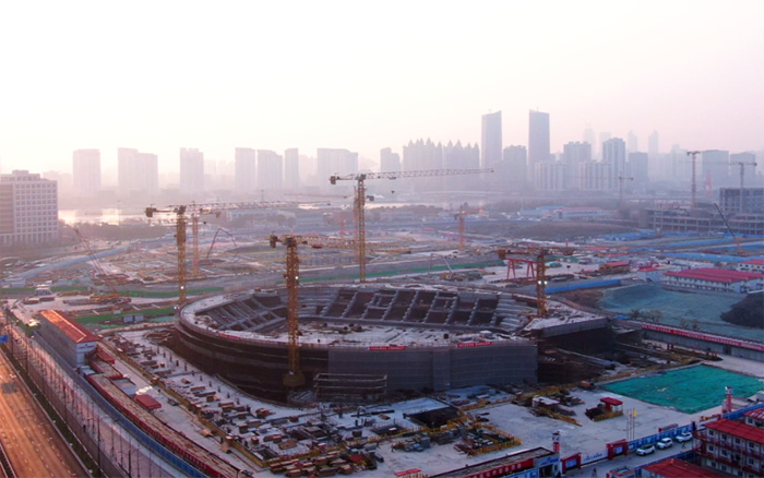 该项目造型奇异,,,,,,主赛场区域结构重大,,,,,,同时接纳大宗的曲线设计,,,,,,给现场钢筋、水泥预制件的制作与装置带来了重大挑战,,,,,,也对塔机的综合性能提出极高要求。。。